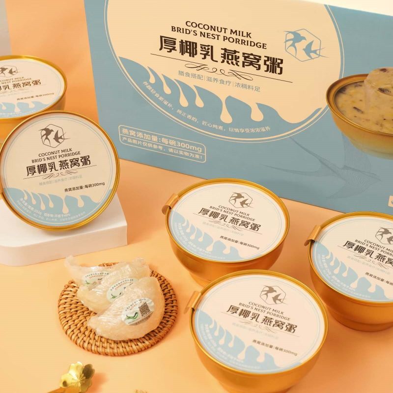 Bubur Sarang Burung dengan Santan Wangi dan Pekat, dengan rasa yang unik dan pembungkusan yang elegan, menambah sentuhan kecantikan yang unik pada setiap majlis. Ini adalah hadiah yang memancarkan kehangatan dan rasa, membawa orang ramai pengalaman rasa yang indah dan detik yang tidak dapat dilupakan.