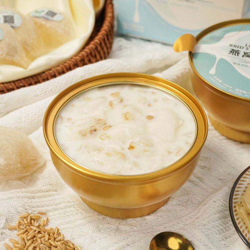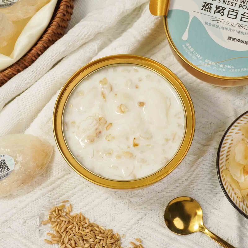 Bahan: Air minuman, santan, oat, lily, sarang burung, walet salji, gula batu